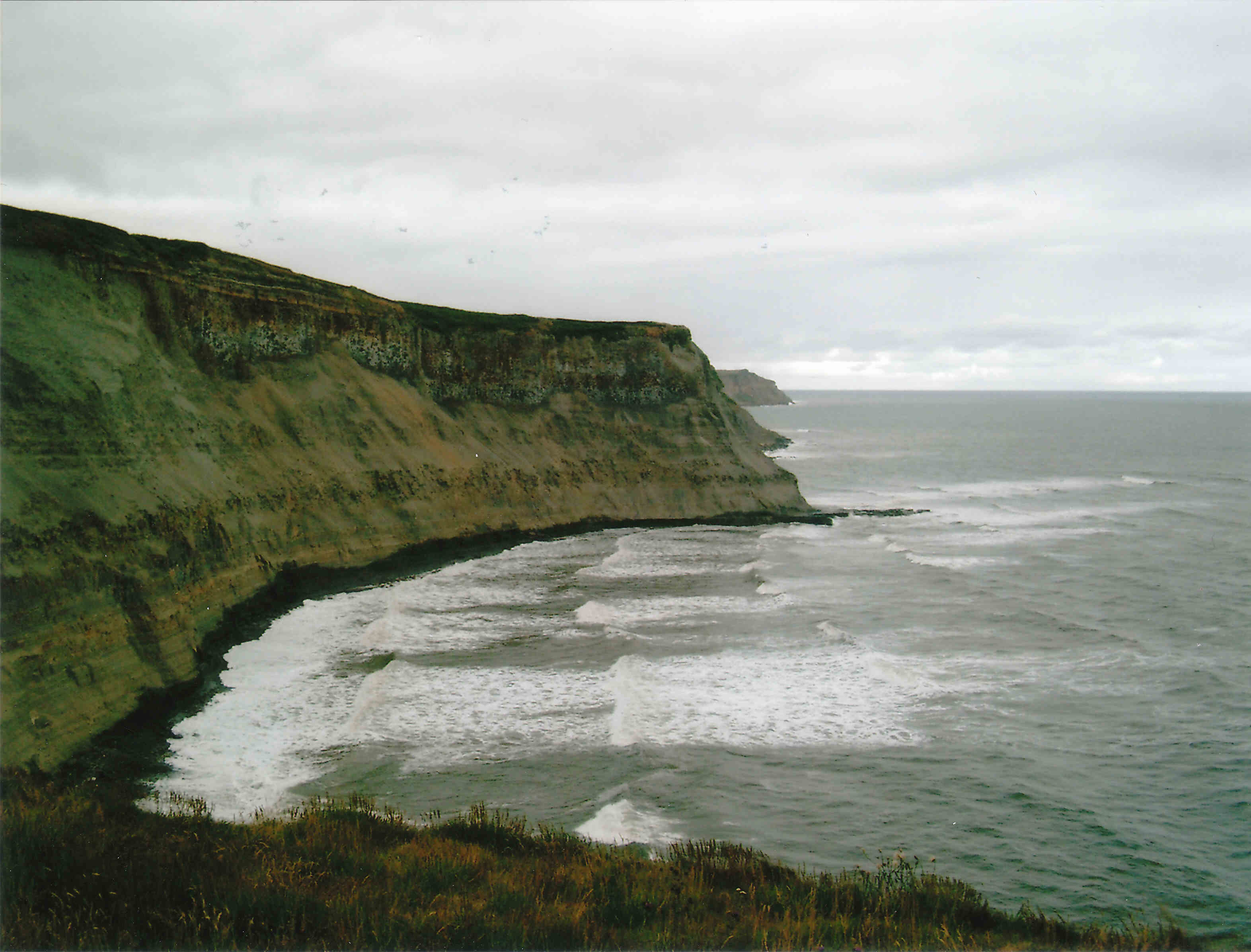 Am Horizont erkannte ich schon bald einen großen Sendemasten, welcher die Aussicht mehr und mehr dominierend stetig näher rückte und gleichzeitig das Ende des Lyke Wake Walks markierte. Von der Kuppe des Hügels aus, auf welchem der Sendemast steht, sah ich dann endlich das Meer, das sich inzwischen durch immer stärkeren Duft und immer lauterem Möwengeschrei mehrmals angekündigt hatte. Nun hörte ich auch die Brandung gegen die Steilküste schlagen. Ich war also an der Nordsee angelangt. Vor mir lag ein kleines Küstendorf mit dem malerischen Namen Ravenscar. Ansonsten gab es nicht viel zu sehen. Der Lyke Wake Walk war zwar vorbei, meine Wanderung aber noch lange nicht. Es lag noch viel vor mir. Im Süden lag Scarborough, im Norden lag Whitby – beides etwa gleich weit von mir entfernt. Ich ging nach Norden.