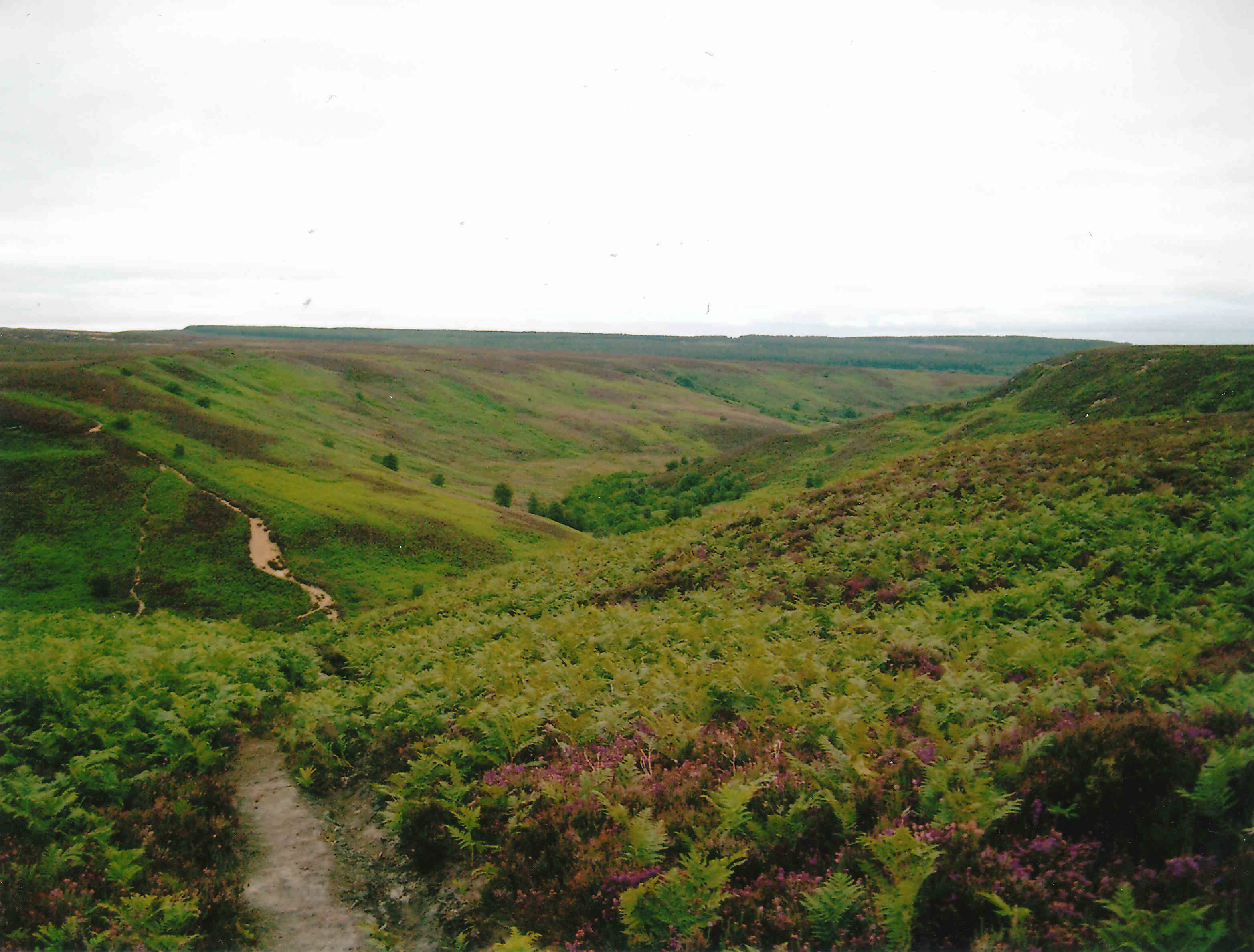 Mit der Landkarte in Händen und den Kompass stets griffbereit, führte mich mein Weg als erstes ein Stück nach Südwesten. Ich kam hinab zum naturbelassenen Bachbett des West Beck und folgte dessen Verlauf auf engen Pfaden durch nassgrüne Wälder stromaufwärts, vorbei am märchenhaften Wasserfall des Mallyan Spout. Wenn man durch die Wälder Englands wandert, dann wird einem leicht klar, warum man dort so viele Märchen von Feen und Kobolden kennt. Es liegt etwas Magisches in diesen Wäldern. Es tat gut sich in der freien Natur zu bewegen und endlich zu wandern. Ich hatte keine Ahnung, was dieser Tag mir noch geben könnte und wo ich die Nacht verbringen würde, doch eben dies macht den großen Reiz so einer Wanderung aus – die Ungewissheit, was als nächstes kommt. Bald verließ ich den kleinen Strom, bahnte mir meinen Weg über sanfte Hügel durch Weiden mit Schafen, über Trockenmauern hinweg und vorbei an Bilderbuch-Cottages, die eine weite Landschaft überblickten. Der Himmel war grau. Doch darunter war alles so saftig grün. Bald jedoch veränderte sich mein Umfeld ein wenig. Aus Wiesen wurden Moore und ich merkte, wie wichtig es war auf meinem Pfad zu bleiben, um nicht im trügerischen Boden zu versinken.
