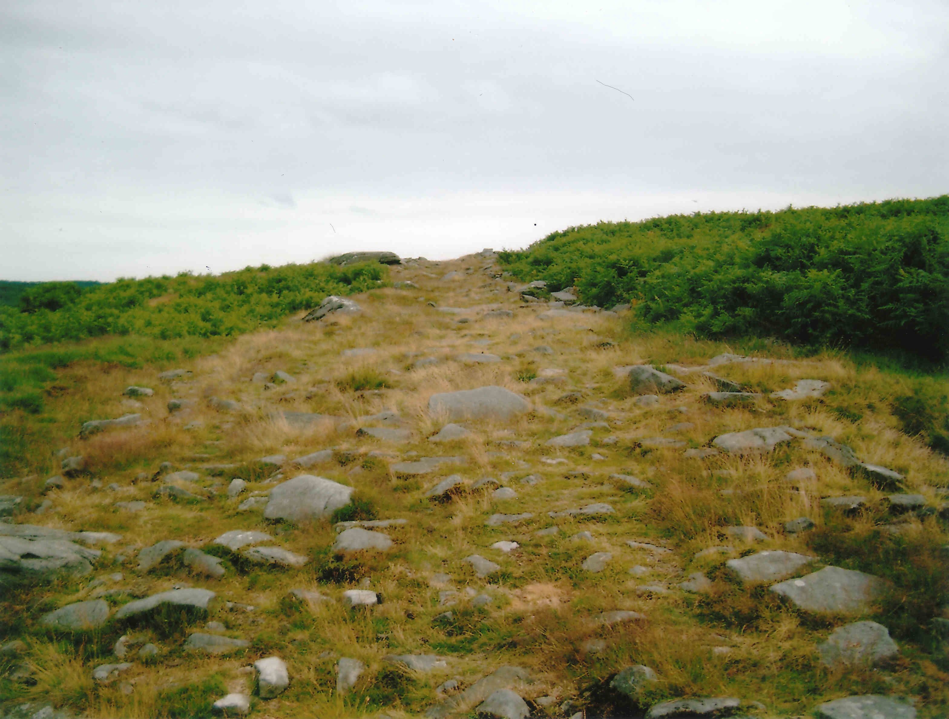Die von den Wolken verdeckte Sonne im Rücken, machte ich mich auf den Weg. Auf der Kuppe eines Hügels zeigte sich bald noch etwas Beeindruckendes. Hier traf ich auf Simon Howe – einem der vielen Grabhügel, die mir auf meiner Wanderung durchs Moor immer wieder begegneten. Es handelt sich dabei um nicht viel mehr als Steinhaufen, doch uralte Steinhaufen – viel älter noch als die Straßen der Römer. Was wohl hier schon geschehen war? Welche Zeremonien hier im Laufe der Jahrtausende gefeiert wurden? Um mich breitete sich das Moor in alle Himmelsrichtungen aus. Ich konnte so weit sehen. Doch das Meer sah ich nicht. Meine Reise ging weiter.