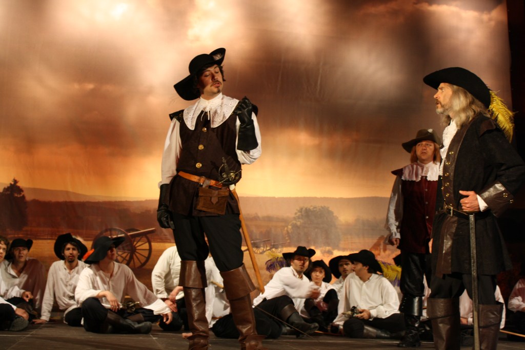 Edmond Rostands Versdrama aus dem Jahre 1897 erzählt wohl eine der berührendsten und schönsten Liebesgeschichten der Weltliteratur. „Cyrano von Bergerac“ ist zugleich romantische Komödie und heroisches Heldenepos, die Geschichte einer großen Täuschung und eines unsterblichen Sehnens, ein Märchen von epischem Ausmaß basierend auf einer wahren Begebenheit. Spätestens seit der oscargekrönten Verfilmung mit Gérard Depardieu hat dieses Stück Weltruhm erlangt. Mit einem Ensemble von über vierzig Mitwirkenden wagte ich mich mit dem Stadttheater Kufstein im Sommer 2011 an dieses große Abenteuer.