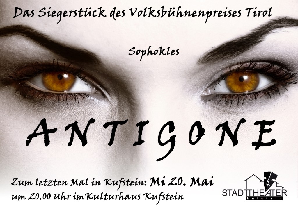 Modern inszeniert, doch mit klassischen Texten, spielten wir dieses griechische Drama in der Art eines Stubenspieles. Es gab keine Bühne. Dieses Unterfangen wurde mit dem Tiroler Volksbühnenpreis belohnt.