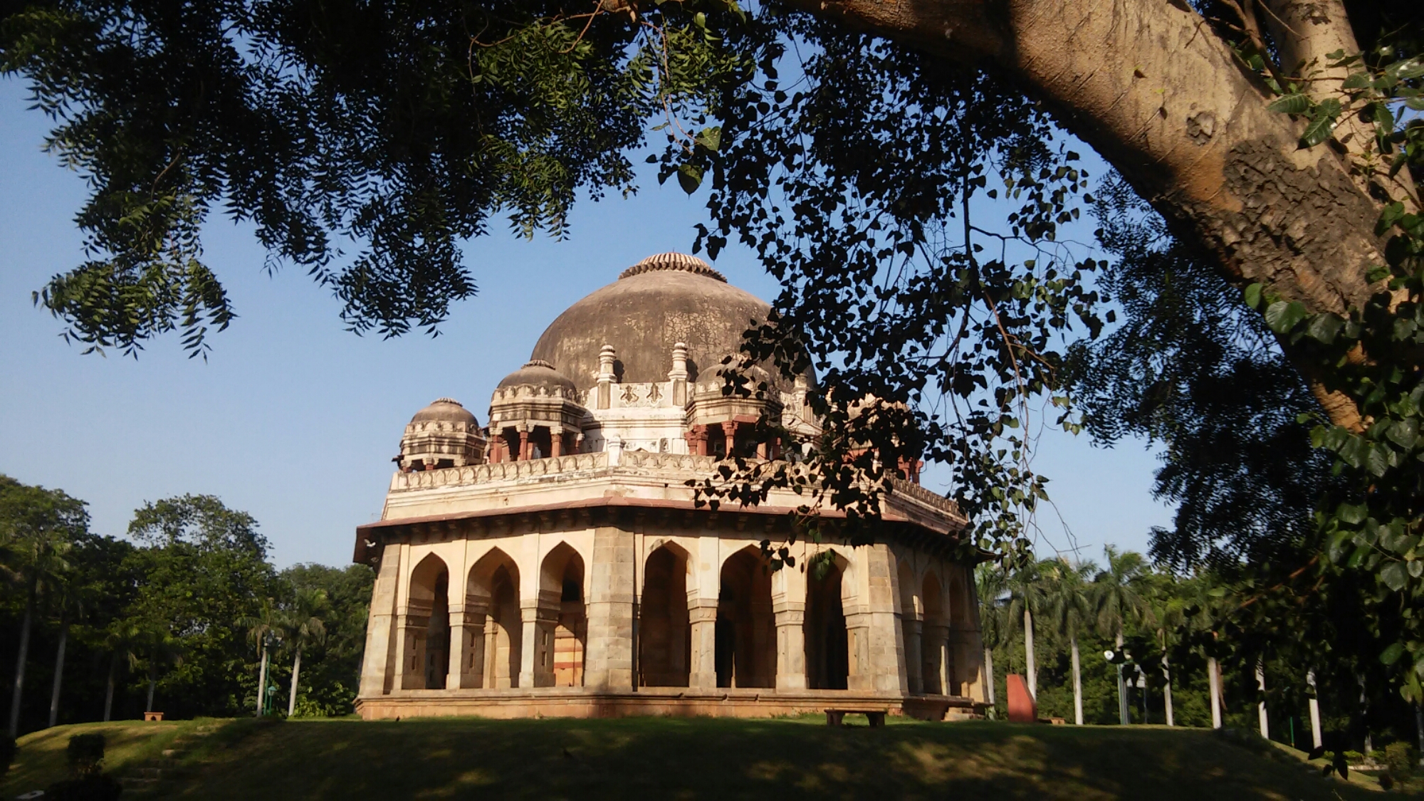 Die Rikshafahrer ignorierend ging ich zu Fuß weiter bis zum Lodi Garden, einem der beschaulichsten Orte des Tages. Zwischen Bäumen und Teichen ragen hier die imposanten Mausoleen einiger Herrscher des 16. Jahrhunderts auf. Außerdem scheint der Ort ein beliebter Treffpunkt indischer Pärchen zu sein, die sich im Schatten der Bäume und Ruinen vor den Augen der sittenstrengen Parkwächter verstecken. Wenn zwei sich küssen, kommt der Wächter wütend pfeifend angerannt.