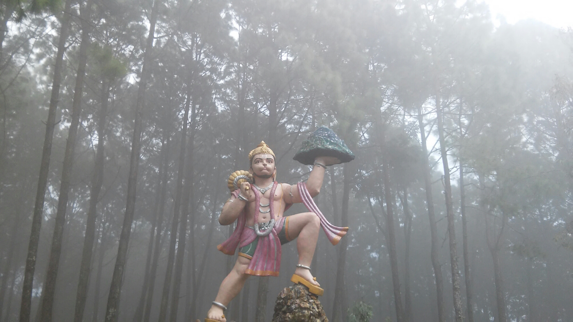 Stattdessen sah ich Nebelschwaden über die Hügel ziehen – aber auch das hatte seinen Reiz. Auf dem grünen Shreenagarhügel gibt es ein paar Sehenswürdigkeiten, darunter eine Buddhastatue, eine Statue von Hanuman, dem mutigen, affenartigen Begleiter Ramas aus der Ramayana, sowie einen halbfertigen Aussichtsturm, der ein bisschen an Mordor erinnert.