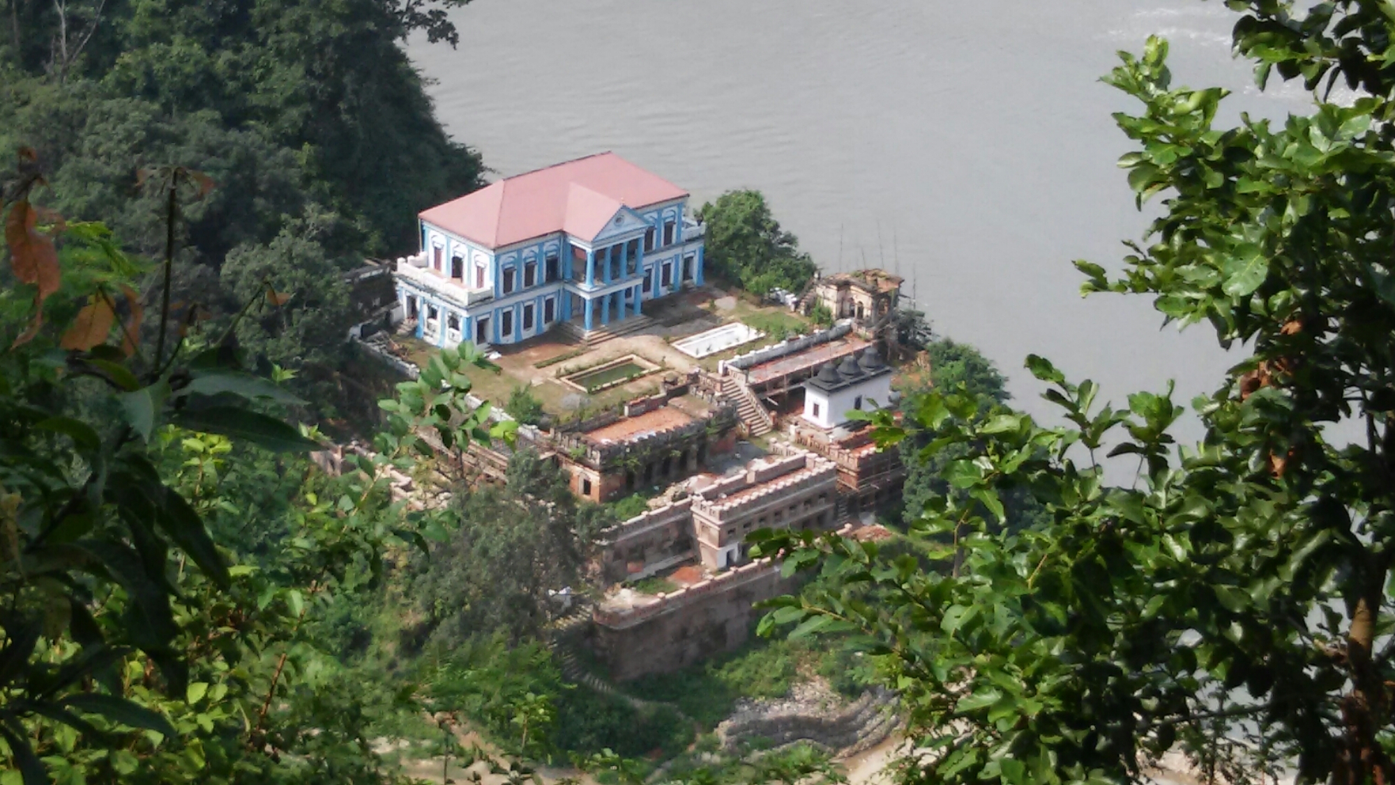 Gegen halb elf Uhr vormittags erreichte ich nach steilem Abstieg das Ufer des wasser reichen Kali Gandaki. Eine 222 Meter breite Hangebrücke (nur für Fußgänger, Autos kommen nicht einmal in die Nähe dieser Gegend) überspannt den reißenden Strom. Und wunderbar idyllisch am Ufer gelegen steht hier der Palast von Ranighat mit seiner traurigen Geschichte. Sein Erbauer, kunstbeflissen und politisch aktiv, wollte hier im Jahre 1896 ein Paradies für sich und seine Gattin schaffen. Britische Architekten aus Kalkutta wurden mit der Planung beauftragt. Keine Kosten wurden gescheut. Doch die Gattin starb. So wurde der Bau mehr zum Mausoleen, als zum Ort der Freude. Wegen politischer Intrigen in Katmandu kam es nun auch dazu, dass der unglückliche Erbauer ins indische Exil gehen musste. Der einstige Wubschtraum stand nun leer, wurde geplündert und schleichendem Verfall preisgegeben. Ein geradezu melancholisches Gefühl überkommt einen, wenn man durch die kühn geplanten Räume schleicht, auf den Balkonen die Aussicht betrachtet und aus dem runden Dachbodenfenster lugt.