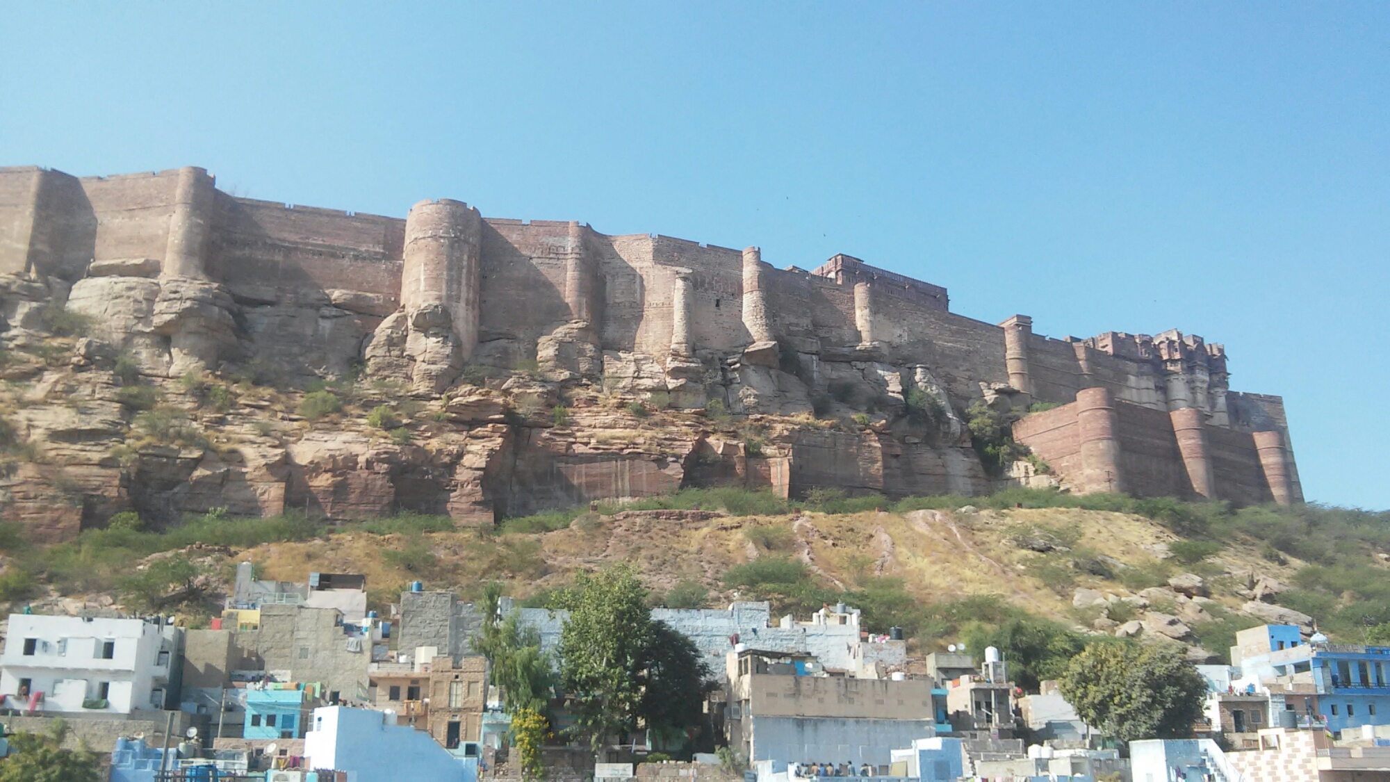 Kurz nach Mittag erreichte ich Jodhpur, die blaue Stadt mit ihrer Burg, die wohl die imposanteste Rajasthans ist. Ihr Name ist Mehrangarh. Schon von weitem sah ich ihre hohen Mauern, als ich vom Bahnhof in Richtung Zentrum schritt und wieder einmal das Geschrei der Tuktukfahrer und der „My friend!“-Leute ignorierte.
