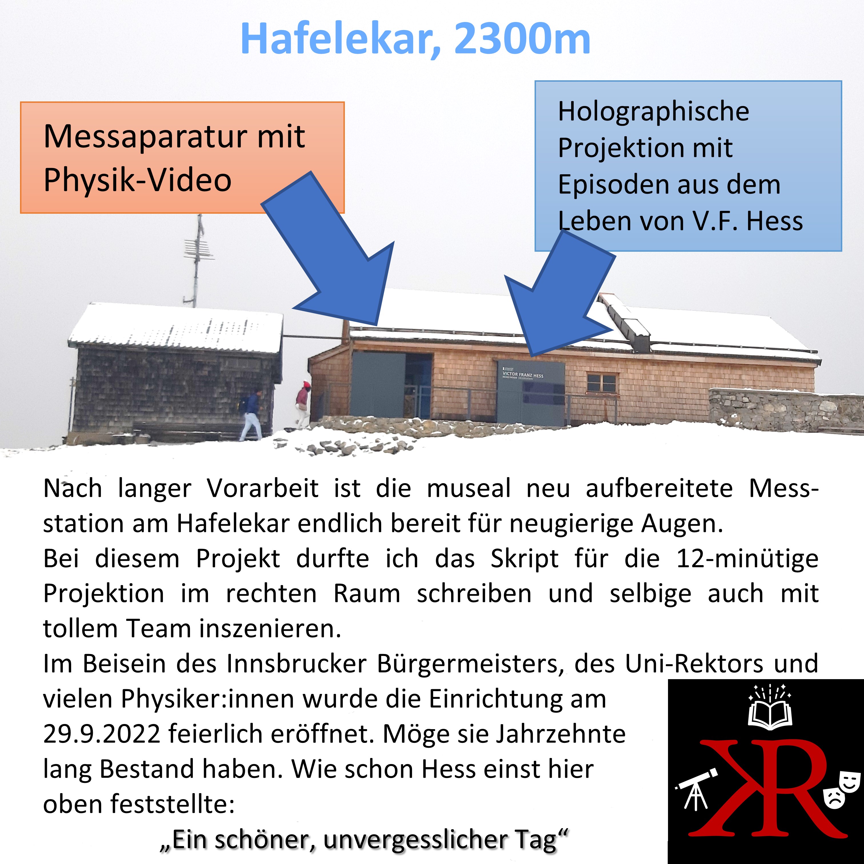 Victor F. Hess erwacht zum Leben … September 30, 2022klaus-reitberger Links zu Presseberichten: https://www.meinbezirk.at/innsbruck/c-lokales/neues-highlight-auf-dem-hafelekar_a5618842 https://tirol.orf.at/stories/3175800/ https://www.tt.com/artikel/30833157/messstation-am-innsbrucker-hafelekar-als-physik-sehenswuerdigkeit-ausgezeichnet Teilen Sie dies mit: Klick, um auf Facebook zu teilen (Wird in neuem Fenster geöffnet) Facebook Klicke, um auf X zu teilen (Wird in neuem Fenster geöffnet) X Gefällt mir Wird geladen … Ähnliche Beiträge