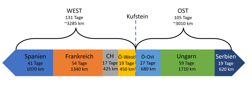 Der E4 führt in voller Länge vom Süden Iberiens bis Zypern und ist somit der längste Fernwanderweg Europas. Die Bewältigung dieses Weges, welcher unseren ganzen schönen Kontinent durchzieht, ist mir zu einer Art Lebensaufgabe geworden.